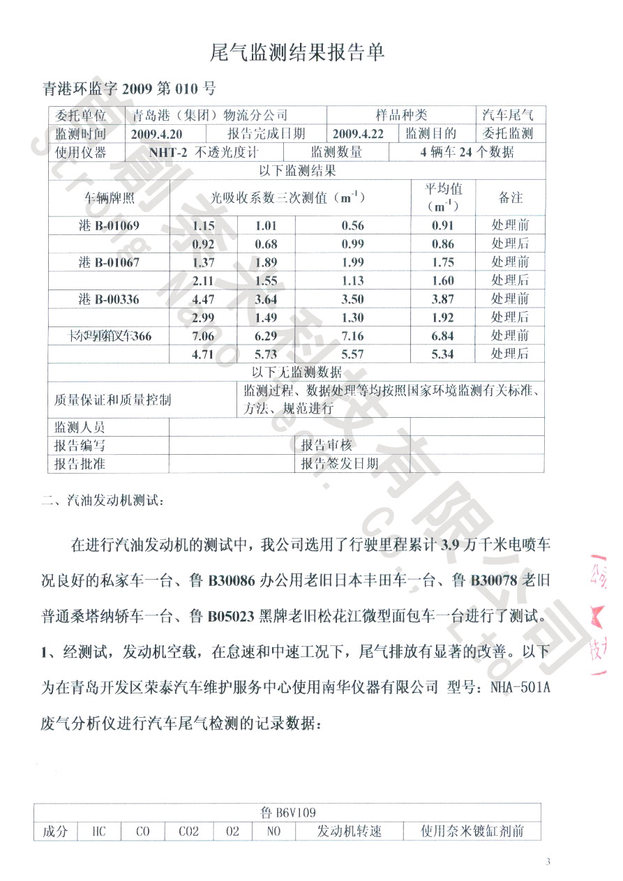 柴油車使用奈米黃金添加劑前後排煙檢測對照